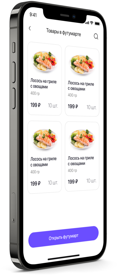 Чтобы открыть футумарт и начать покупки пользователь регистрируется по телефону и привязывает свою банковскую карту.
